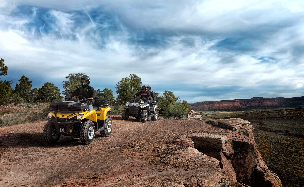 - Outlander L имеет водонепроницаемый задний багажный отсек объемом 10,9 л., а приборная панель квадроцикла отображает всю необходимую информацию о состоянии квадроцикла.